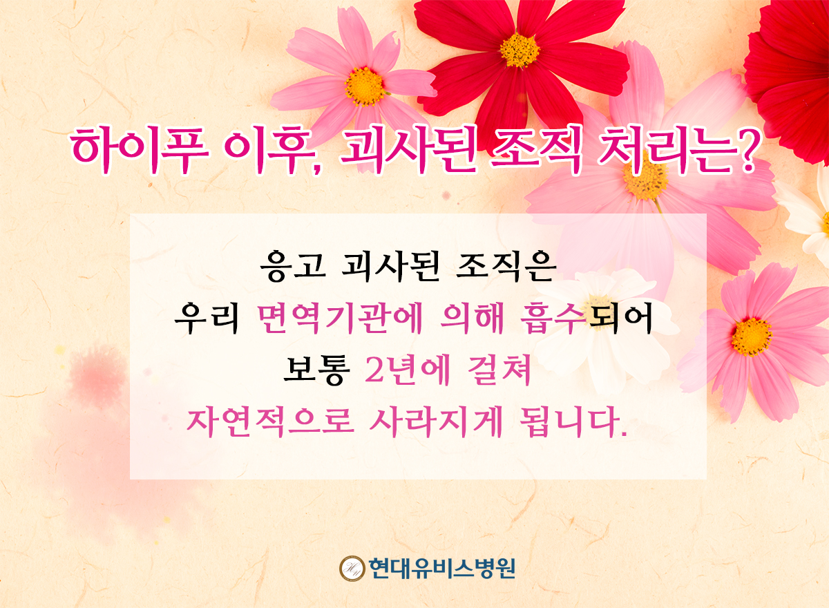 응고괴사된 남은 조직은 어떻게 꺼내는지 혹은 어떻게 되는 건지 궁금해 하실 거예요.